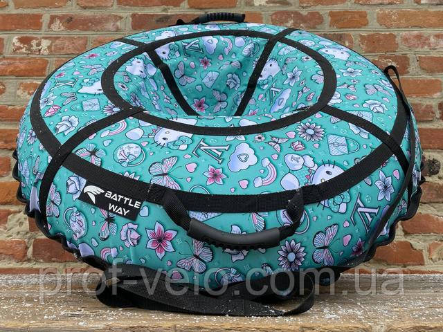 Матеріал тюбінга не схильний до різних грибків і стійкий до ультрафіолетових променів. Витримує великі навантаження і має відмінне ковзання по засніжених схилах, а також по льоду та мокрому снігу. Тюбінг Hello Kitty бірюзовий 2025 120 сантиметрів повністю укомплектован та готов до експлуатації. Наші тюбінги комплектуються камерами. Камера виготовлена з гуми, що витримує низькі температури, оснащена стандартним ніпелем, що дозволяє робити накачування як звичайним велосипедним, так і різними автомобільними насосами. Виріб оснащений блискавкою, завдяки якій не потрапляє всередину надувної ватрушки дрібне сміття та сніг. Тюбінг прострочений надійними хрестоподібними швами та посилен міцною стропою. Комфортні пластикові бічні ручки.