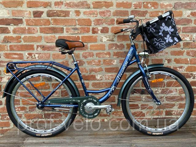Велосипед дорожній Royal 26 Voluniya класичний жіночий з кошиком синій.